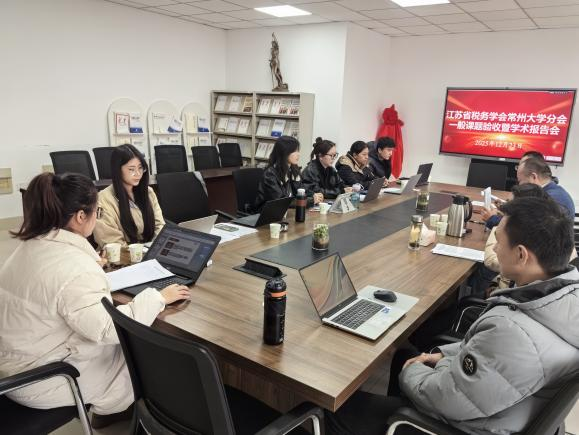 2025年12月23日上午,由常州大学申报立项的江苏省税务学会一般调研课题成果验收报告会在常州大学武进科教城校区文彬楼416会议室成功举办。江苏省税务学会常州大学分会会长、常州大学史良法学院财税法学科负责人田开友教授主持本次报告会,江苏省税务学会常州大学分会副会长唐步龙教授、史良法学院李俊英教授担任课题成果验收评议专家。